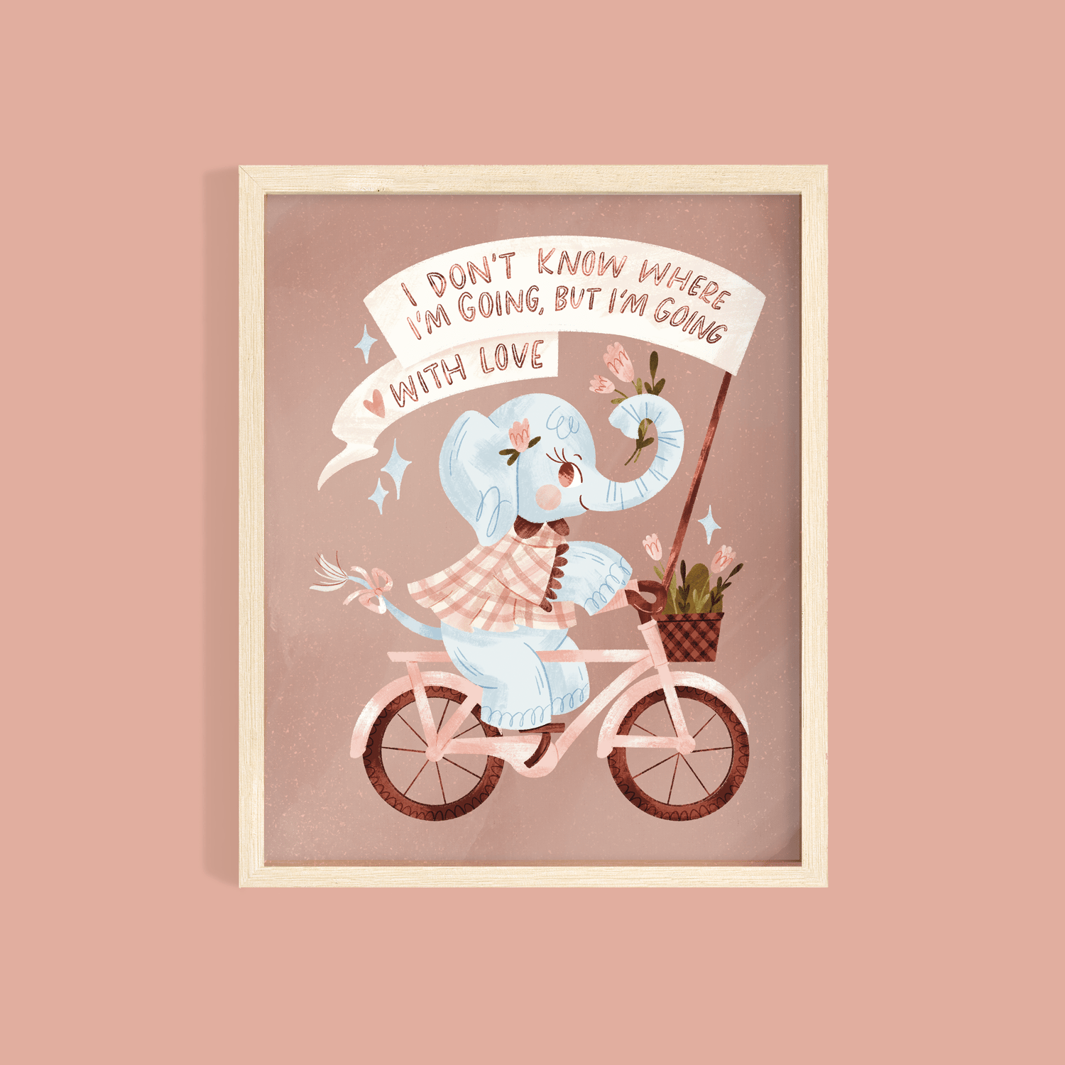 Elephant Going With Love Illustrated Art Print